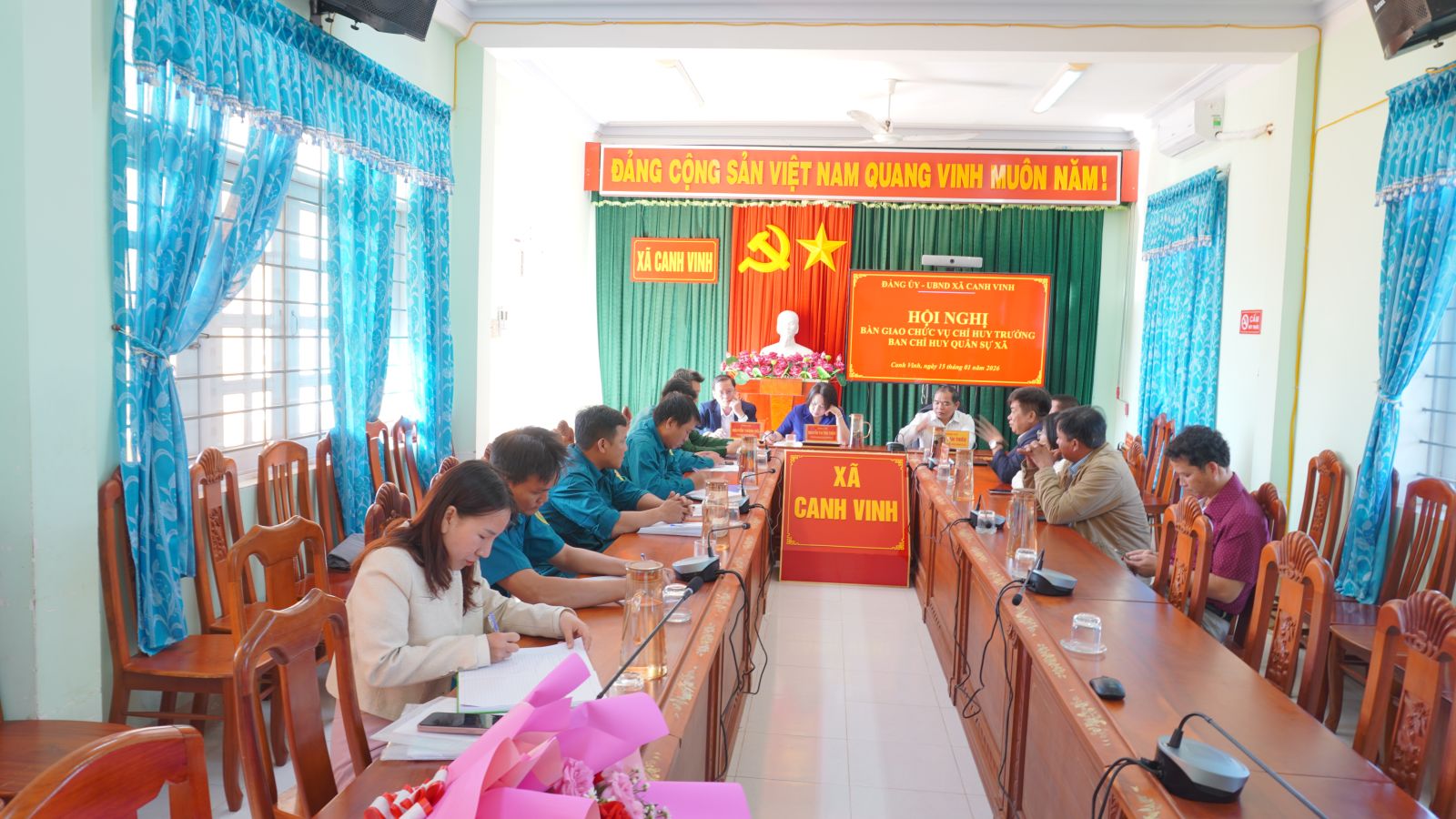 Tại hội nghị, việc bàn giao chức vụ Chỉ huy trưởng Ban Chỉ huy Quân sự xã được tiến hành nghiêm túc, đúng trình tự, thủ tục theo quy định. Các nội dung bàn giao được thực hiện đầy đủ, đảm bảo chặt chẽ, thống nhất, tạo điều kiện thuận lợi cho công tác lãnh đạo, chỉ huy lực lượng vũ trang địa phương trong thời gian tới.