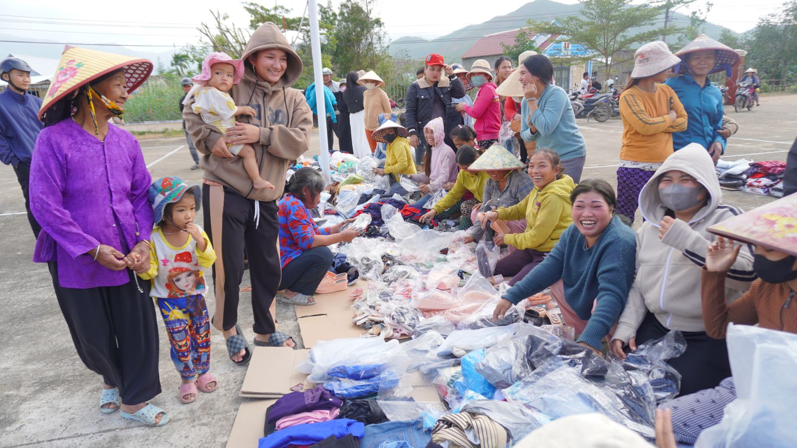 Hình ảnh bà con vui mừng khi tham dự phiên chợ