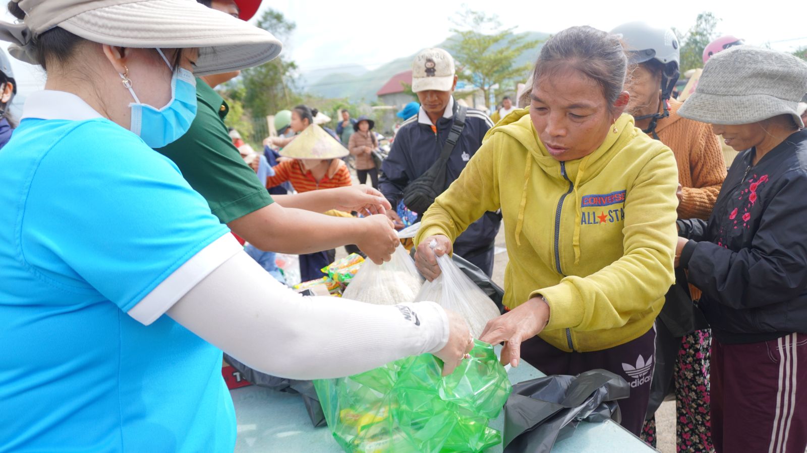 Đại diện lãnh đạo Hội đoàn thể trao quà cho bà con