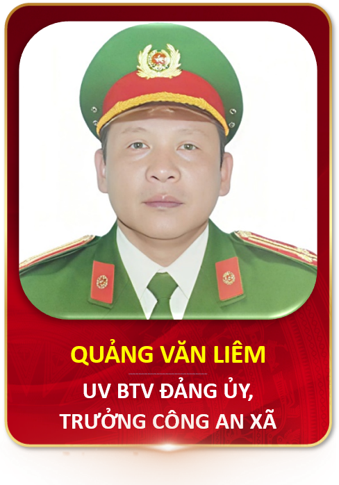 LÃNH ĐẠO CÔNG ANTrưởng Công anQUẢNG VĂN LIÊMPhó Công anPhó Công an LÃNH ĐẠO QUÂN SỰChỉ huy trưởngNGUYỄN NGỌC THẮNGChỉ huy phóChỉ huy phó Chia sẻ: | In bài viết
