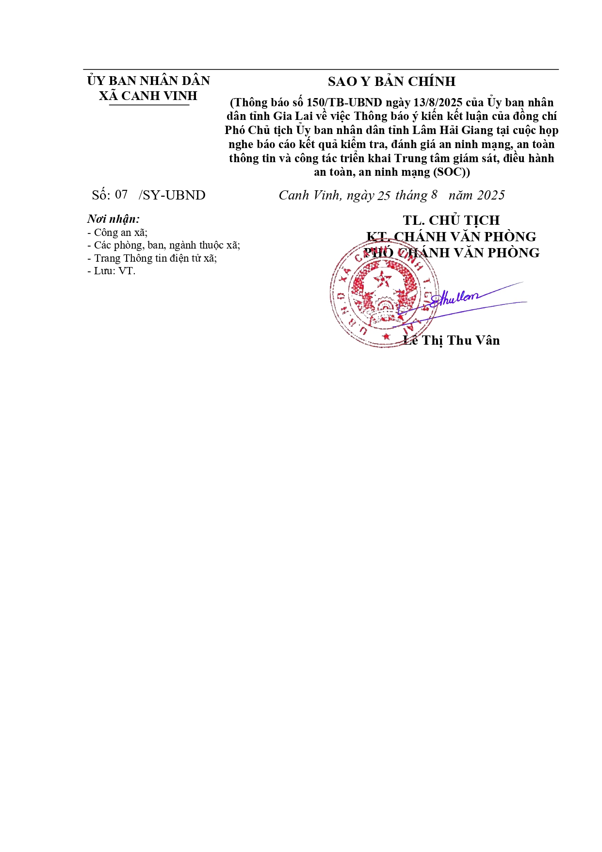 SAO Y Thông báo số 150/TB-UBND ngày 13/8/2025 của Ủy ban nhân dân tỉnh Gia Lai 26/08/2025, 10:41:33 - Lượt xem: 3 Tweet Thêm vào danh sách Báo xấu Thông tin tài liệu SAO Y Thông báo số 150/TB-UBND ngày 13/8/2025 của Ủy ban nhân dân tỉnh Gia Lai Giới thiệu: 150_TB-UBND_13082025-signed_01.pdf