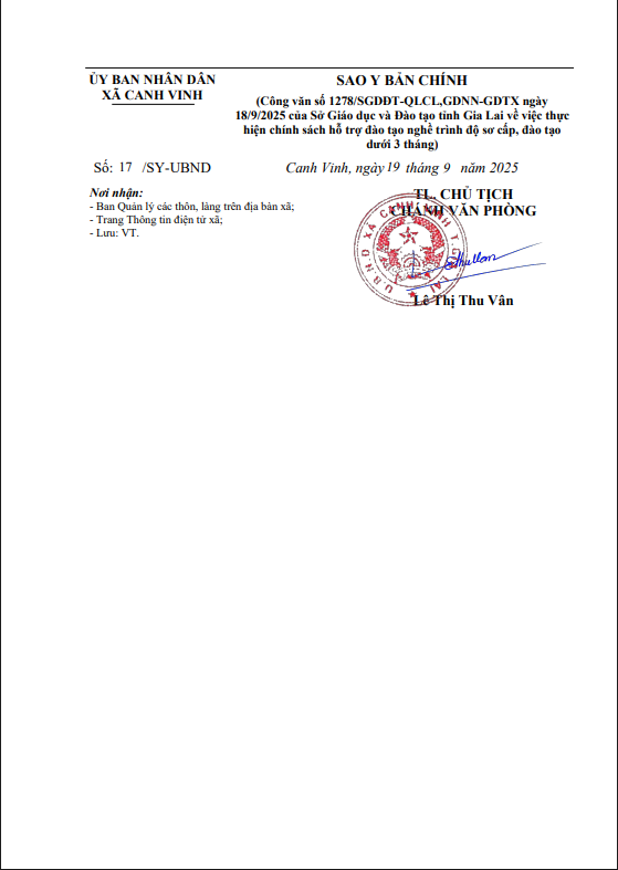 SY-UBND_SAO Y Công văn số 1278/SGDĐT-QLCL,GDNN-GDTX ngày 18/9/2025 của Sở Giáo dục và Đào tạo tỉnh Gia Lai