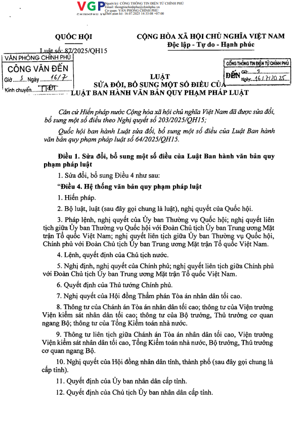 Luật số 87/2025/QH15 27/11/2025, 14:38:02 - Lượt xem: 2 Tweet Thêm vào danh sách Báo xấu Thông tin tài liệu Luật số 87/2025/QH15