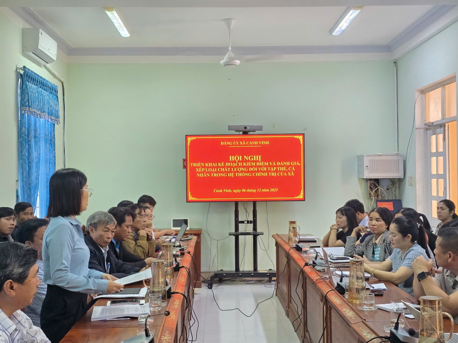 Tại hội nghị, Ban Xây dựng Đảng đã quán triệt mục đích, yêu cầu và các nội dung trọng tâm của Kế hoạch kiểm điểm và đánh giá, xếp loại chất lượng đối với tập thể, cá nhân trong hệ thống chính trị xã năm 2025 trong đó đặc biệt lưu ý đối tượng, nội dung, quy trình kiểm điểm, đối tượng đánh giá, xếp loại, cũng như quy trình đánh giá theo Khung tiêu chí cho từng nhóm đối tượng với thang điểm 100. Việc đánh giá phải dựa trên hiệu quả công việc, kết quả thực hiện nhiệm vụ, sản phẩm cụ thể gắn với vị trí việc làm, chức trách, nhiệm vụ theo số lượng, tiến độ, chất lượng.