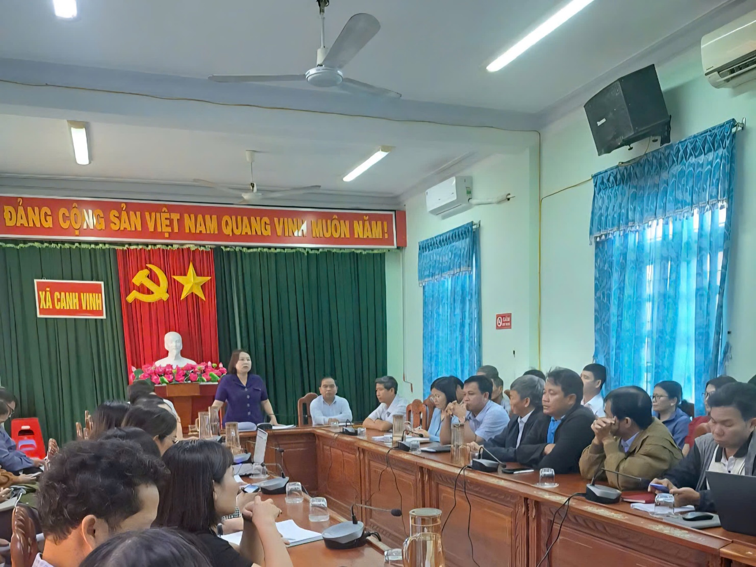 Đồng chí Nguyễn Thị Thu Thủy - Tỉnh ủy viên, Bí thư Đảng ủy xã phát biểu trong Hội nghị