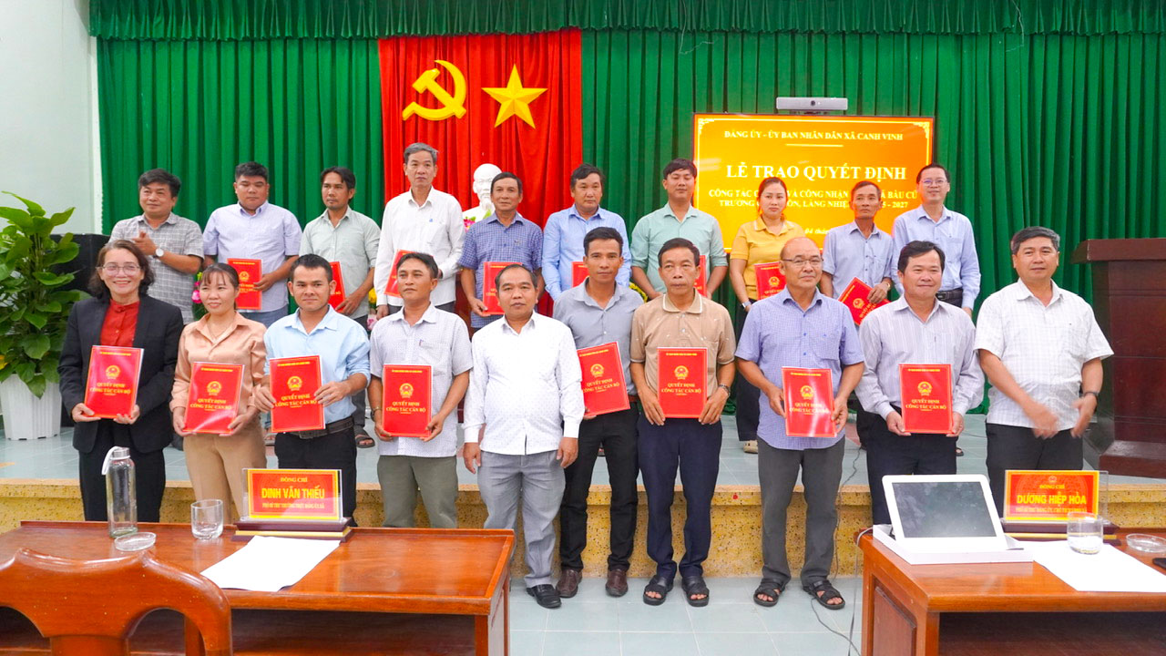 Phát biểu tại buổi lễ, lãnh đạo xã chúc mừng các đồng chí được nhận quyết định, ghi nhận tinh thần trách nhiệm và sự nỗ lực trong công tác; đồng thời mong muốn các đồng chí tiếp tục phát huy tinh thần đoàn kết, gương mẫu, tiên phong trong thực hiện nhiệm vụ, góp phần xây dựng Đảng bộ và chính quyền xã Canh Vinh ngày càng trong sạch, vững mạnh.