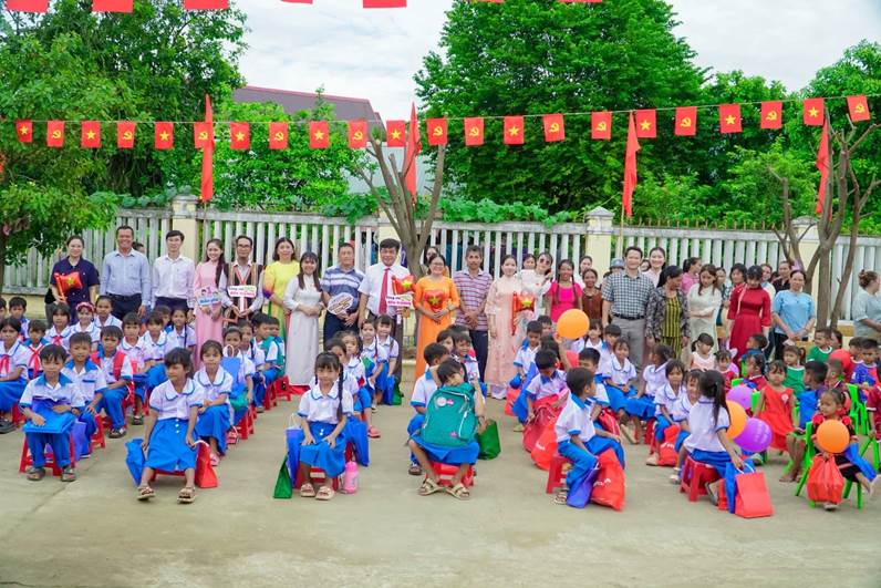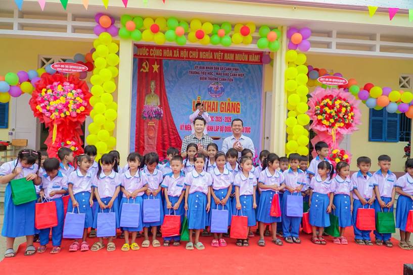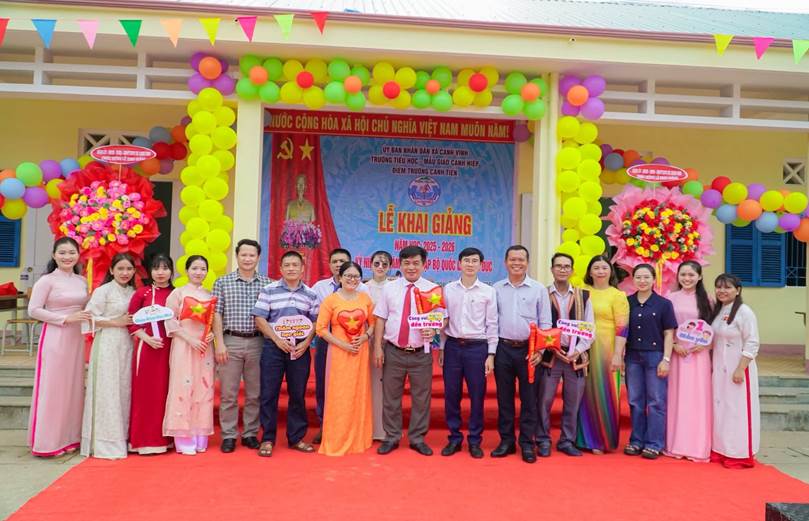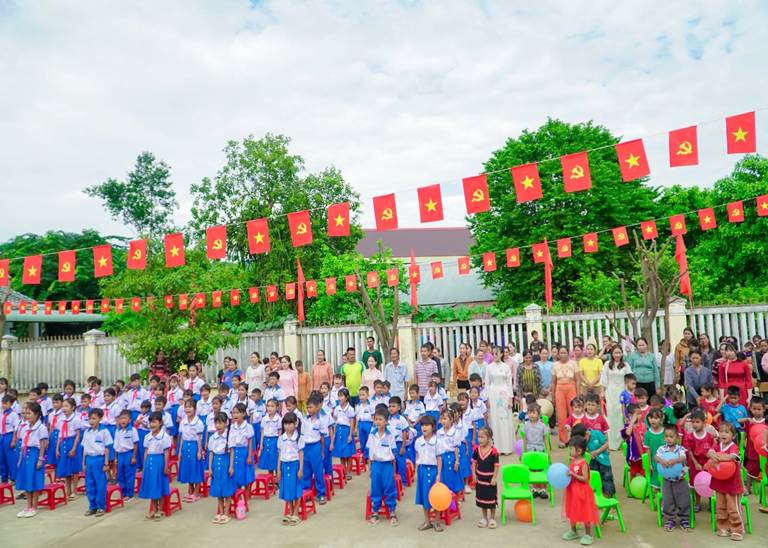 Quang cảnh buổi khai giảng tại Điểm trường Tiểu học Làng Canh Tiến