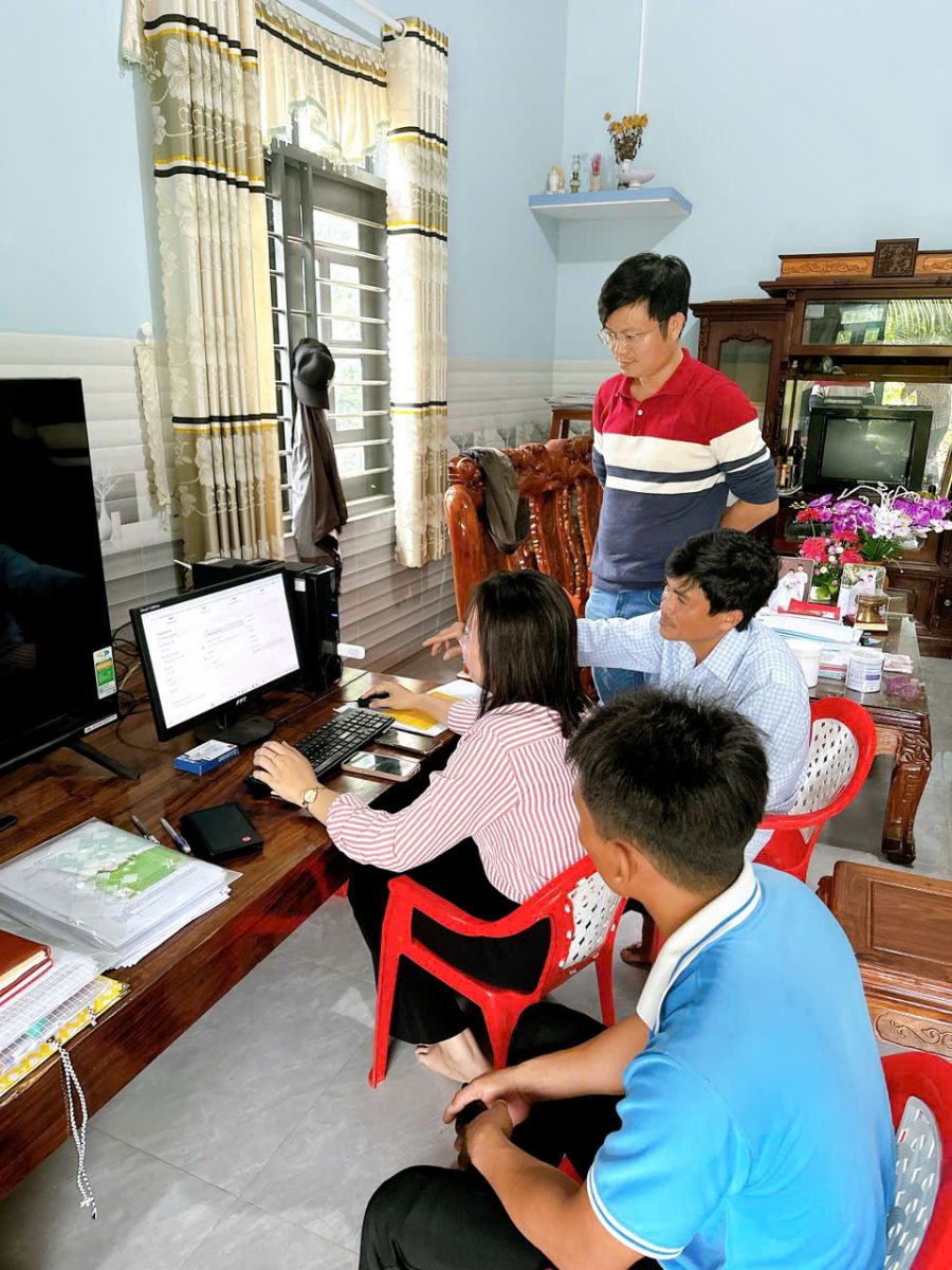 Công chức Trung tâm Phục vụ hành chính công xã hướng dẫn thành viên Tổ hỗ trợ thao tác trực tuyến.