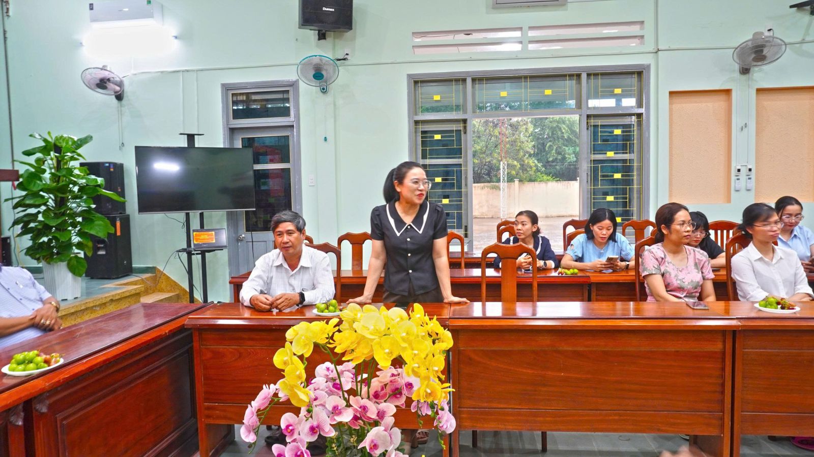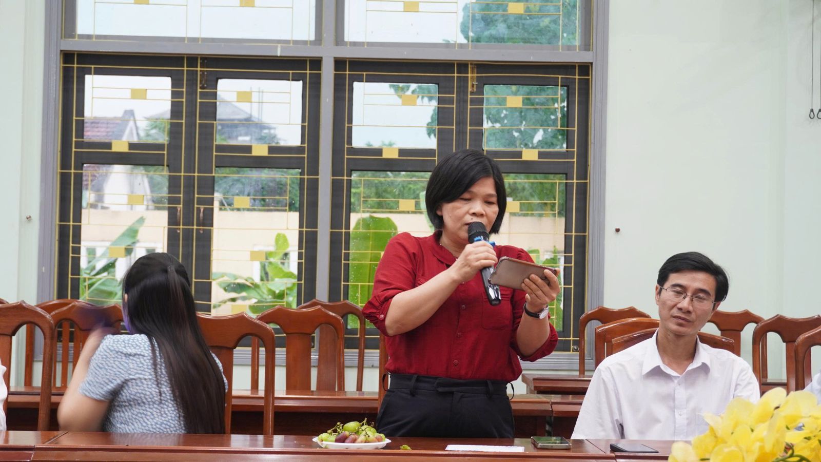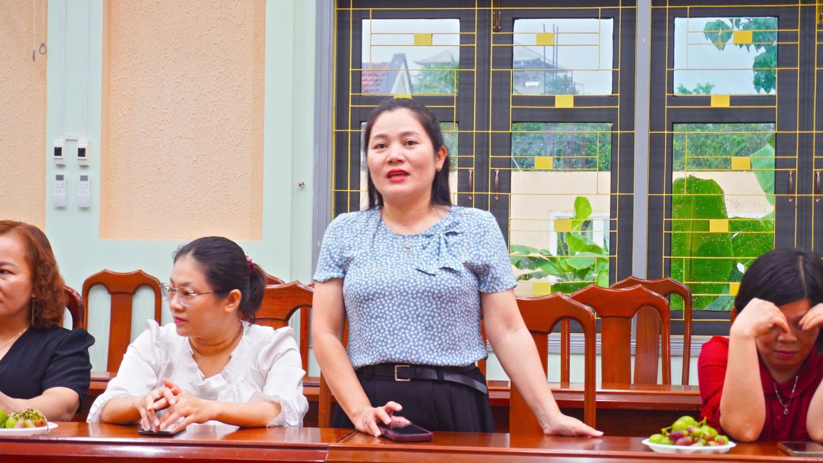 Đồng chí Lê Thị Thu Vân - Chánh Văn phòng HĐND và UBND xã phát biểu