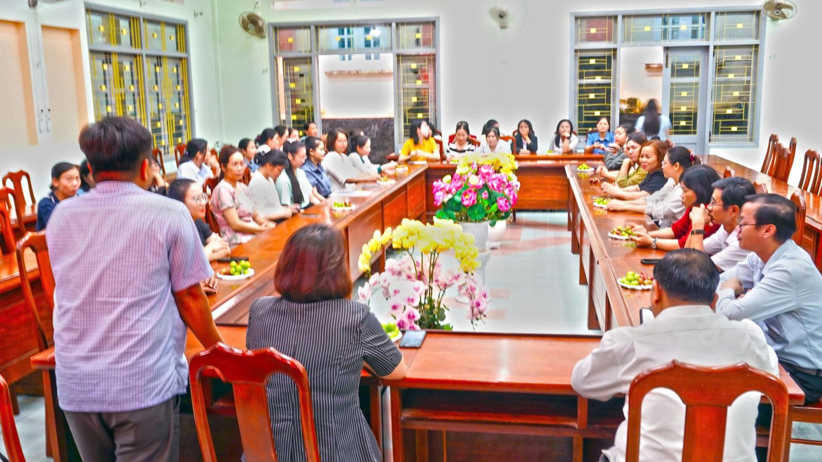 Toàn cảnh buổi tọa đàm kỷ niệm 95 năm Ngày Phụ nữ Việt Nam tại xã Canh Vinh diễn ra trong không khí vui tươi, đầm ấm. Đông đảo cán bộ, công chức và hội viên phụ nữ tham dự, cùng nhau ôn lại truyền thống, chia sẻ những kết quả đạt được trong công tác phụ nữ thời gian qua. Trên bàn là những đĩa trái cây giản dị, thể hiện sự gần gũi, thân mật. Các ý kiến phát biểu, trao đổi được lắng nghe trong tinh thần đoàn kết, cởi mở. Buổi tọa đàm đã để lại nhiều ấn tượng đẹp, thể hiện sự quan tâm sâu sắc của cấp ủy, chính quyền xã đối với đội ngũ nữ cán bộ, hội viên phụ nữ.
