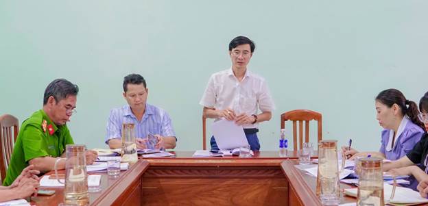 Đồng chí Vũ Trọng Tiến - Phó Chủ tịch UBND xã chỉ đạo hội nghị và với sự tham dự của lãnh đạo 8 trường học từ bậc mầm non đến trung học cơ sở.